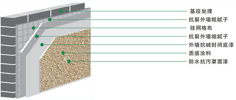 建議配套產(chǎn)品:多彩專(zhuān)用抗堿底漆一遍,多彩中涂一遍,多彩漆兩遍(建議涂裝道數(shù)),專(zhuān)用罩光面漆一遍。